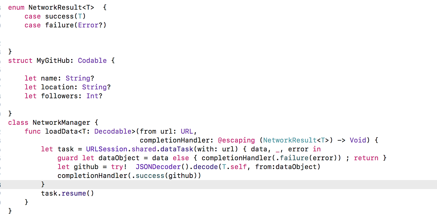 ์ด ๋ฉ์๋๋ URLSession์ผ๋ก ์๋ฒ์์ ๋ฐ์ดํฐ๋ฅผ ๊ฐ์ ธ์ค๊ณ ๋ชจ๋ธ์ response๋ฅผ ๋์ฝ๋ฉํ๋ค.