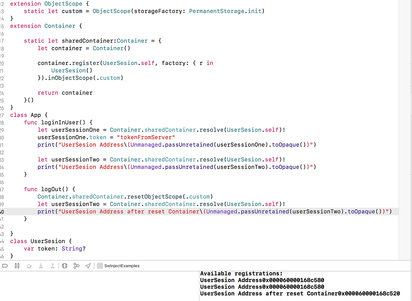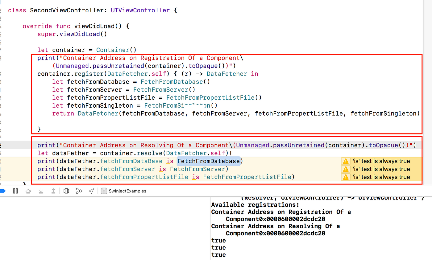 - Value Types injections : ์ด์ ์์ ์์๋ ํด๋์ค๋ฅผ ์ฌ์ฉํ์ง๋ง, ๊ตฌ์กฐ์ฒด(Struct)๋ resolveํ ์ ์๋ค. (Value ํ์ ์๋ ์ฝํ ์ค์ฝํ(weak scope)๋ฅผ ์ฌ์ฉํ ์ ์๋ค.)