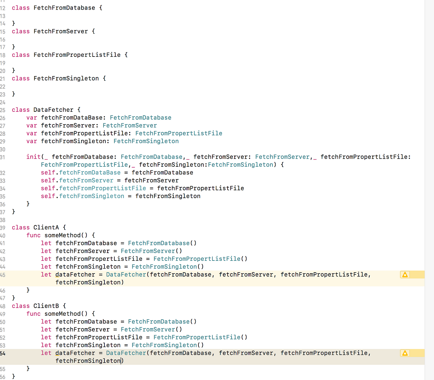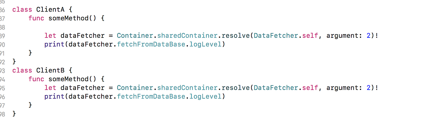 ์์ ๊ทธ๋ฆผ์์ ๋ณผ ์ ์๋ฏ ClientA์ ClientB ๋ชจ๋ DataFetcher์ ์์กดํ๊ณ ์๋ค.