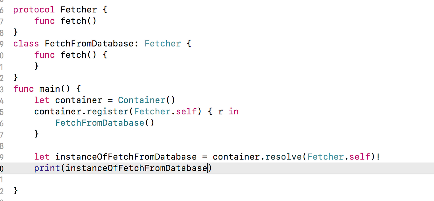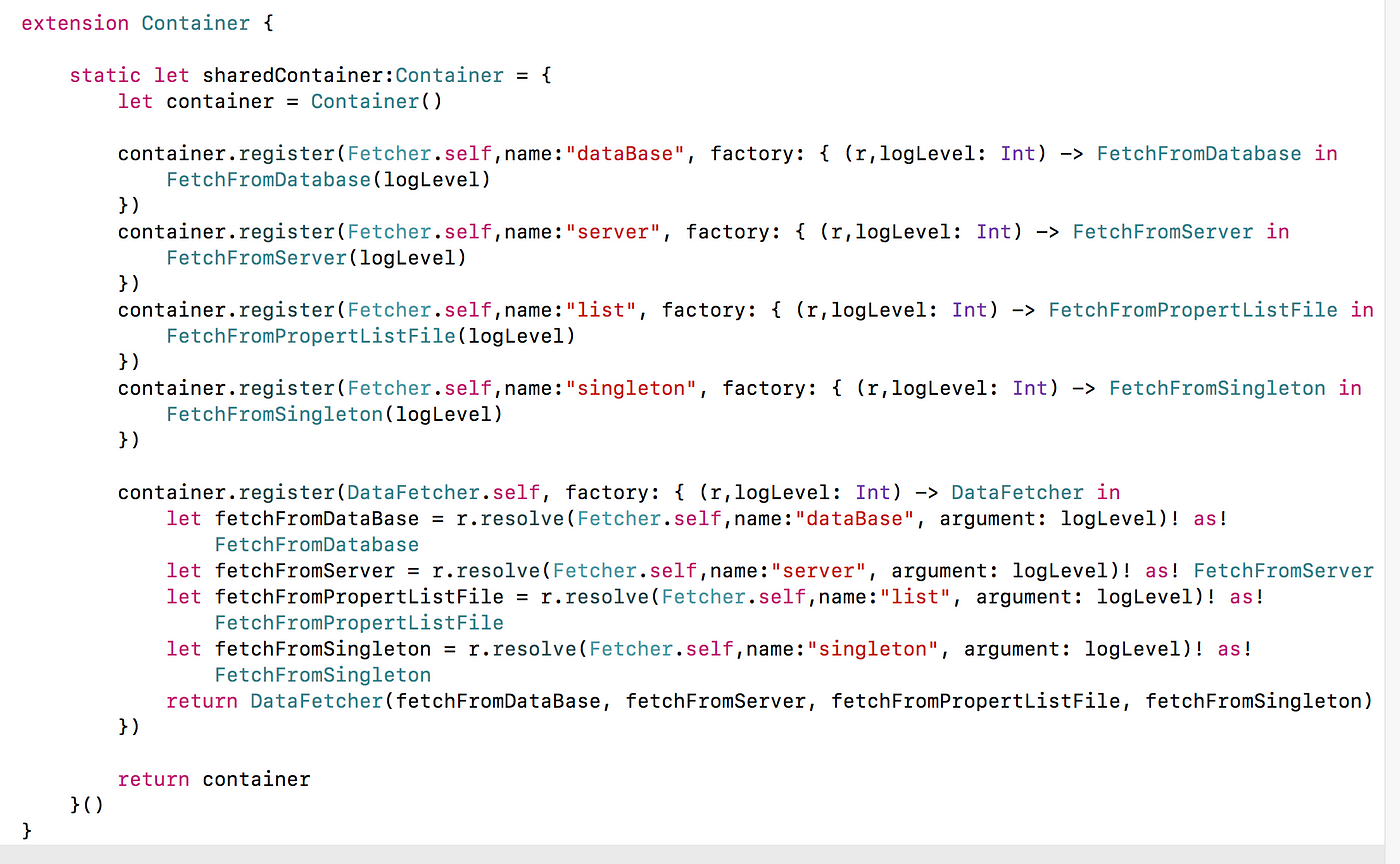 ์ด์ Fetcher.self๋ฅผ Service ํ๋กํ ์ฝ๋ก ๋ฑ๋กํ๊ณ DI Container๋ฅผ ์ฌ์ฉํ์ฌ resolveํ๋ค.