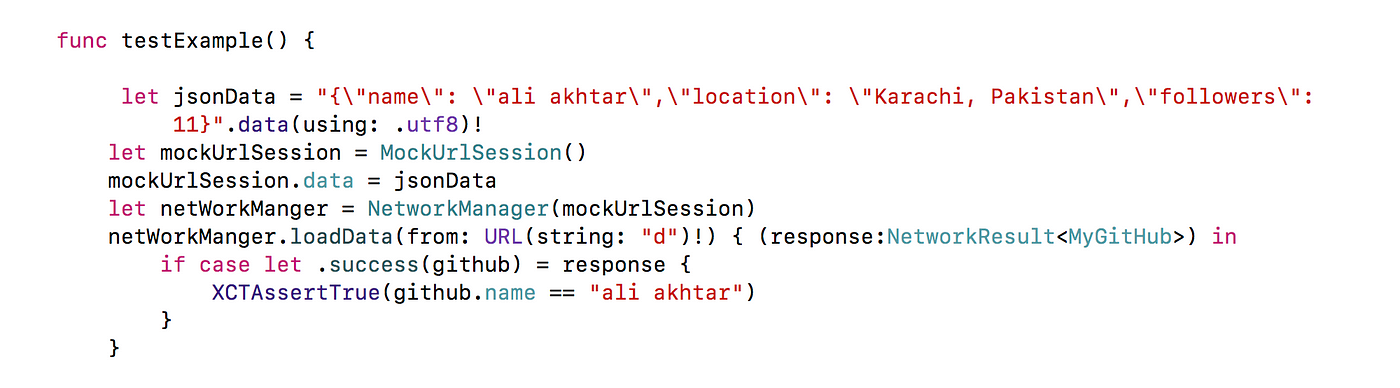 ์์์ ๋งํ๋ฏ์ด ๋ชจ์ ๋ฐ์ดํฐ๋ฅผ ๋ฐํํ๊ณ ๋ชจ์์๋ฒ ์ญํ ์ ํด์ค MockUrlSession๊ณผ MockUrlSessionDataTask ํด๋์ค๋ฅผ ๋ง๋ค์๋ค.